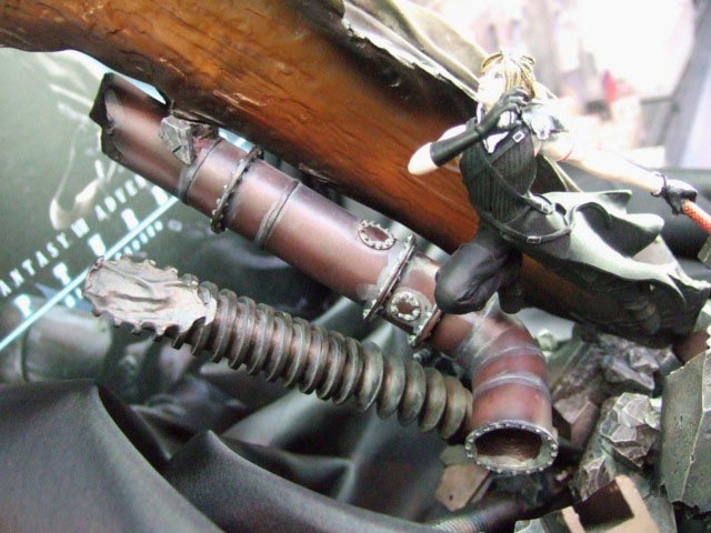もちろん、真っ二つになった女神像の片方や、台座からのびる鉄パイプの造形、折れた鉄骨、女神像の翼など、レジンならではの彫刻のような細かい造形は見ていてあきませんね〜w