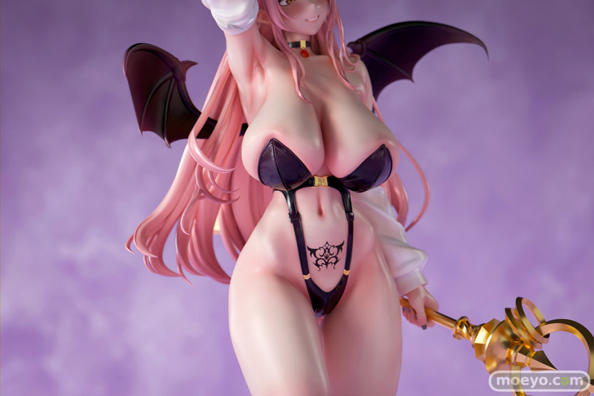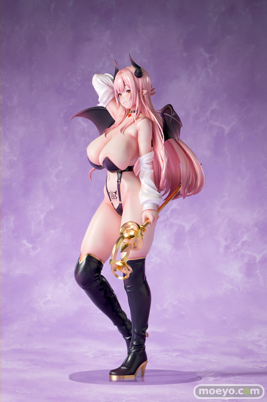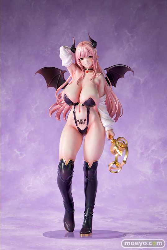 桃色のロングヘアに、お腹の紋様、硬質な角と羽が特徴のサキュバス少女を立体化。