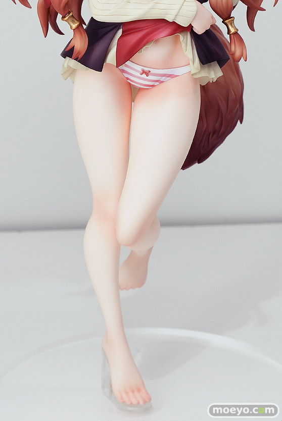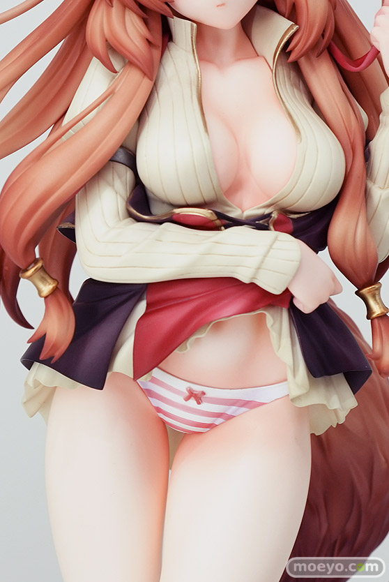抱き枕カバー用に描き下ろしたイラストをモチーフに、衣装を大胆にはだけさせた姿で立体化しました。恥ずかしそうな仕草を魅力的に再現。首元のリボンを外したことで開かれた衣装や、スラリと伸びる足のラインなども丁寧に表現しています。