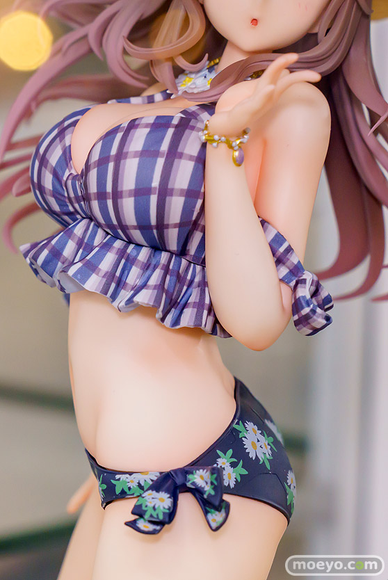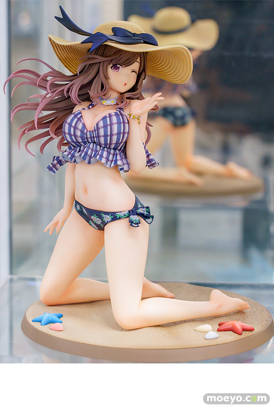メガハウスの新作美少女フィギュア「Lucrea アイドルマスター シャイニーカラーズ 月岡恋鐘 ビ~ バップ海岸Ver.」の彩色サンプルが、あみあみ 秋葉原ラジオ会館店で展示!『ゲーム内にて登場する「SRプロデュースアイドル【ビ~ バップ海岸】月岡恋鐘」で描かれる水着姿のイラストをモチーフに、浜辺で投げキッスしている姿を可愛らしく表現!明るく透き通った肌とリボンの様な可愛いチェック柄の水着を落ち着いた色味で表現する事により、幼くとも何処か大人びた月岡恋鐘の魅力を感じさせるフィギュアになっております!』というもので、原型制作はタカトリさん。彩色はピンポイントさん。その展示の様子を画像レビューとしてお伝えします!