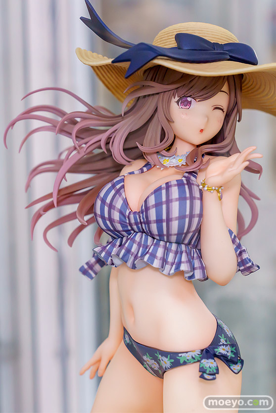 明るく透き通った肌とリボンの様な可愛いチェック柄の水着を落ち着いた色味で表現する事により、幼くとも何処か大人びた月岡恋鐘の魅力を感じさせるフィギュアになっております!