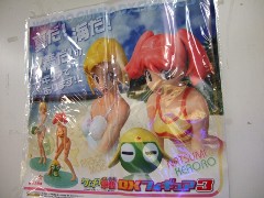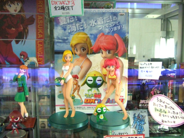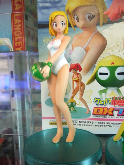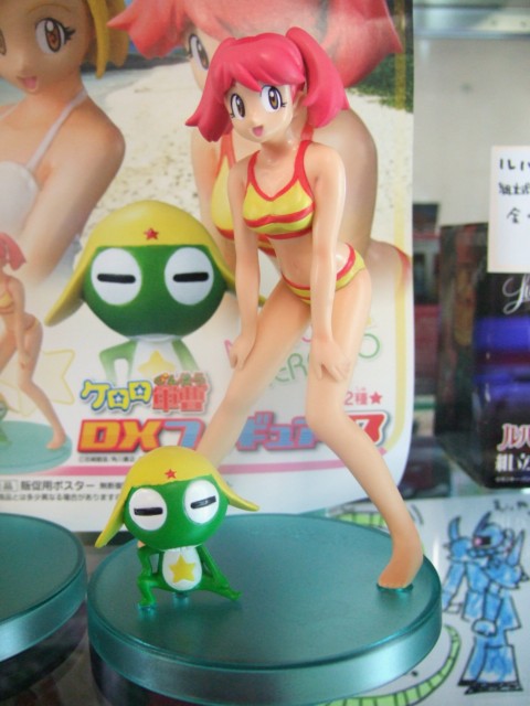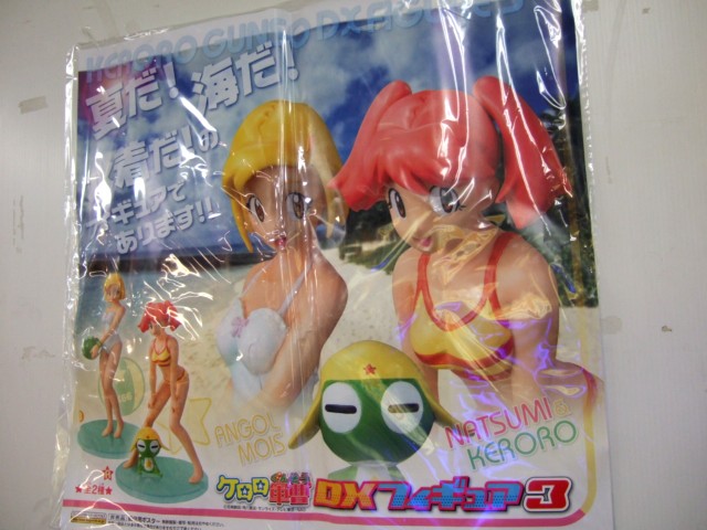 ハビコロ玩具では、バンプレストプライズの「ケロロ軍曹 DXフィギュア 第3弾 夏美&モア」(AM)が入荷しています。これは、夏美は黄色地に赤いラインが入ったビキニ、モアは純白のワンピースの水着姿で立体化されているものです。ゲーム情報サイトegによると、「モアが持つビーチボールにはケロロ軍曹を表す「K66」マークが。リストバンドもグリーンのおじさま仕様」みたいです。