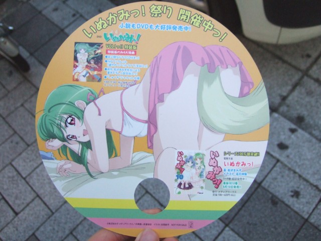 「いぬかみっ!祭り」開催中のゲーマーズ本店では、予定通り「特製ぞうさんウチワフリー配布」が行われていました。ただ、そのうちわでまず目がいくのは裏面の象さんではなく、表面の四つんばいようこかなとw ほか、11日から配布予定のセラちゃんうちわとか、キャラシティ5Fで、アトリエ彩の新作「朝比奈みくる」の原型展示の予告とか、8月9日のアキバのよろずネタを。