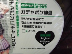 裏面にはセラちゃんリペイントのイラスト。 このうちわを持って店舗案内|ホビーショップコトブキヤ秋葉原店に行くと、本来2000円以上購入した人しか挑戦できないガチャポンチャレンジが一回無料で出来るみたいです。