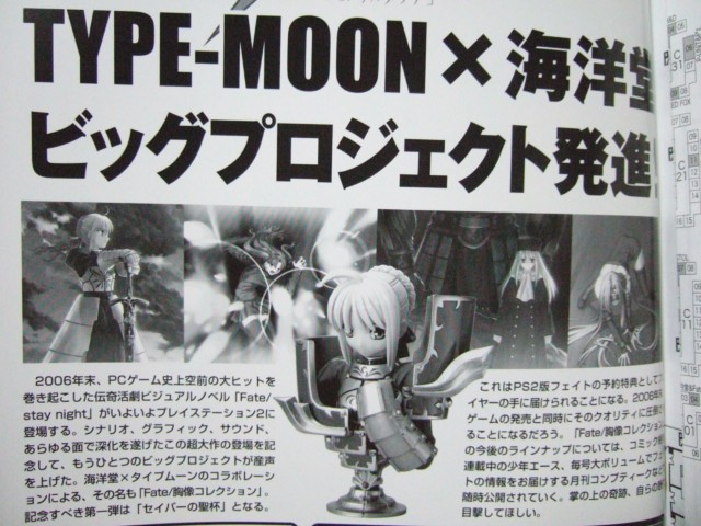 裏表紙には、PS2版「Fate/Stay Night Realta Nua(レアルタ・ヌア)」 (AA)の早期予約特典としてついてくる、海洋堂製作のFate胸像コレクション第一弾:聖杯【セイバー】の紹介が。