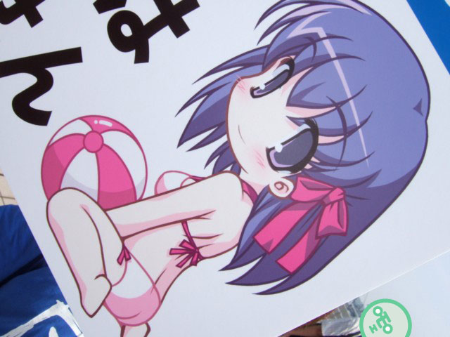 そして、列が途中であることを示す「こちらは最後尾ではありません」看板には凛(イラスト拡大)と桜(イラスト拡大)のこれまたカワエエ水着イラストがあしらわれていました〜!