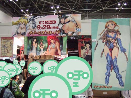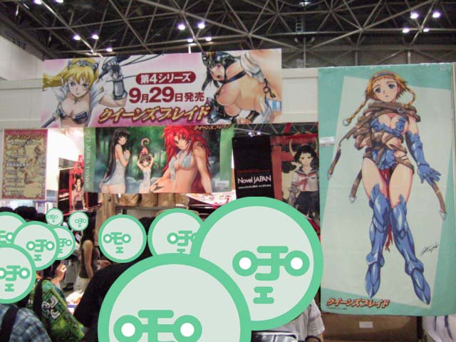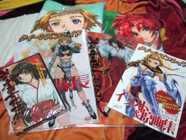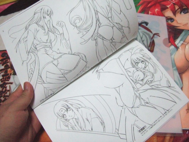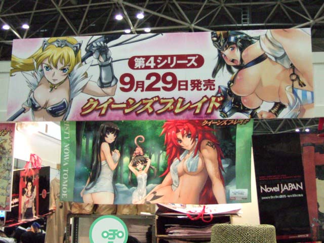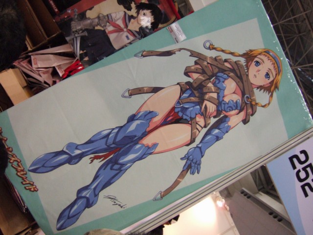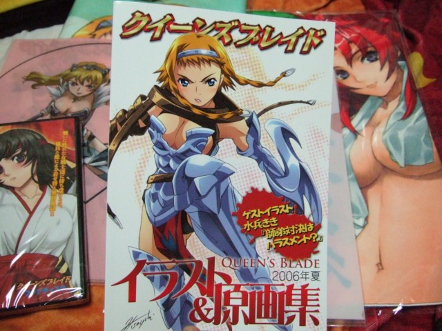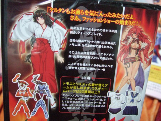 ホビージャパンのブースでは、クイーンズブレイド公式で告知されていた通り、「マイクロファイバー・バス(スポーツ)タオル」や、「クリアファイル(2種セット9)」「イラスト&原画集」などの、クイーンズブレイド限定グッズの販売が行われていました。「トモエ」(AA)と「リスティ」(AA)の着せ替えが楽しめる「武者巫女蛇地獄」も販売され、エロ巫女を早速脱がす(ぉ)と、なんとB地区が・・・!w