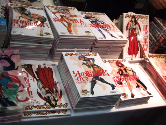 もちろんクイーンズブレイドシリーズも売られていました。 ここでもやはりエロ巫女トモエが一番人気なのか、立てかけられたものを含めても残り3冊となっていました。 ただし、奥にもしかしたら在庫があるかもしれないので、出ているもので在庫全部だったのかは不明です。