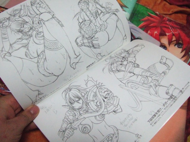 内容はこんなイラストや、各キャラクターの相関図、武者蹴りを含むトモエや、エキドナの原画イラスト(エキドナ画像)や没デザインラフなど。