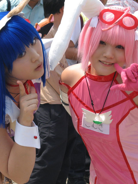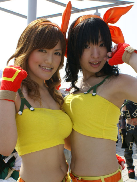 右側のラー油さんは、今までに何度か撮影させていただいてます。コミケ69ではピンクのレオタード。