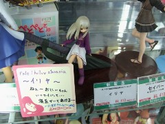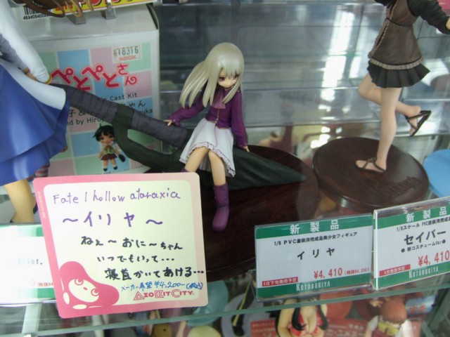 とらのあな1号店では『—–殺すわ。「この商品注文書はフィクションです。」』というPOPもあった、コトブキヤの「Fate/hollow ataraxia イリヤ」(AA)のサンプル展示が、アキバのいくつかの店舗にて開始しています。これは、以前お伝えしたコトブキヤ「セイバー 新コスVer.」(AA)(参考サンプル)同様に、WF2006冬にて開催された「ウラコン」参加作品のPVC化第2弾となるもの。