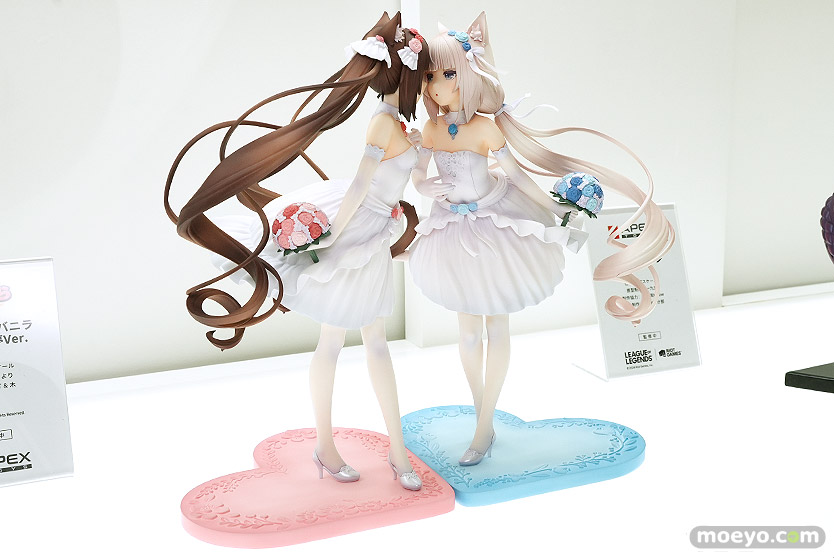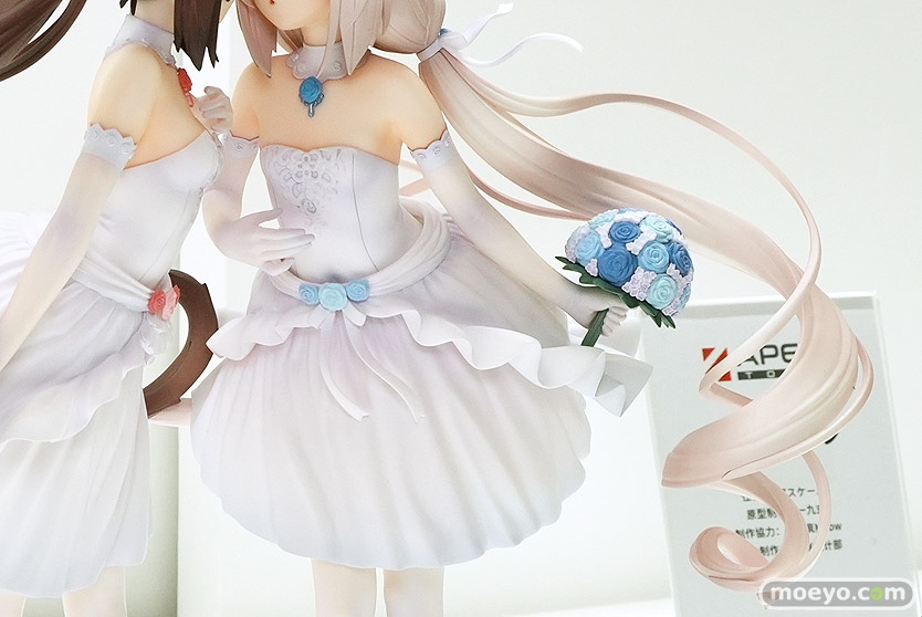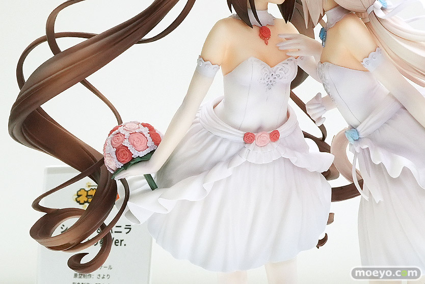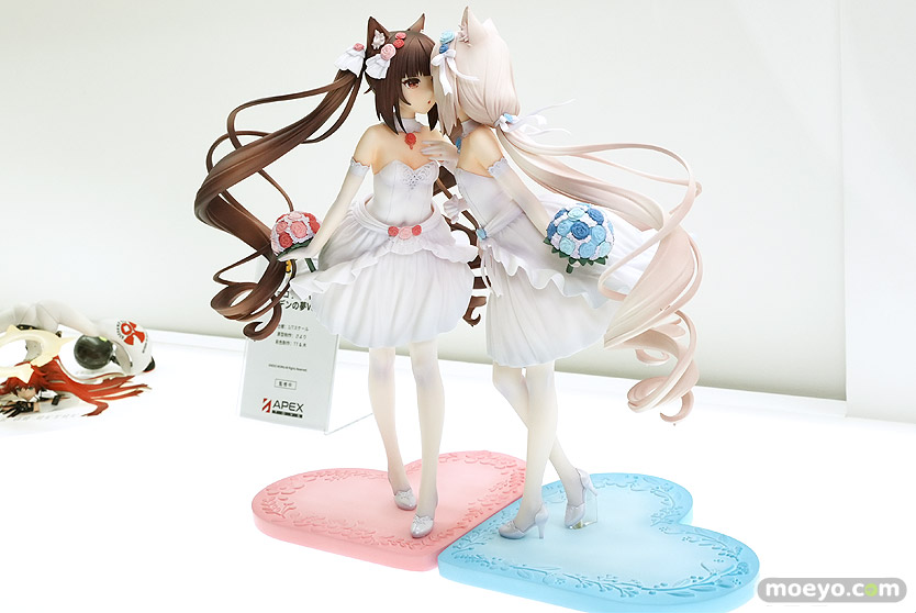APEXTOYSの新作美少女フィギュア「ネコぱら ショコラ&バニラ エデンの夢ver.」が予約受付開始!『キュートな猫耳とふわふわの尻尾がチャイムポイントの「ショコラ」と「バニラ」は、白いウエディングドレスを身に纏いながらブーケを持ち、スイートでエレガントな姿を見せています。さわやかな塗装で、服装のふんわり感やしわも完璧に表現されています。付属の「閉じ目キス顔」、スカート、ブーケは好みに合わせて自由に差し替えられます。』というもので、原型制作はさよりさん。彩色はTTさん、木さん。「ワンダーフェスティバル2024 [冬] 」の会場で展示されていた彩色サンプルの様子を、画像レビューとしてお伝えします!