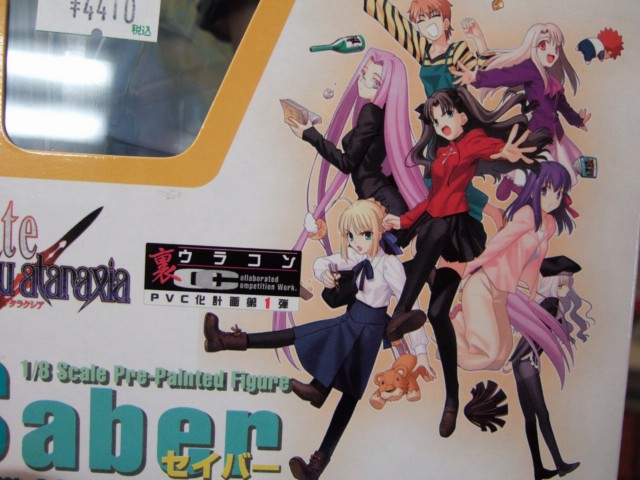 8月17日、アキバのいくつかのホビーショップにて、アキバでサンプル展示もあった、コトブキヤ「Fate/hollow ataraxia セイバー 新コスチュームVer.」(AA)が発売していました。これは、「Fate/hollow ataraxia」のセイバー私服姿を立体化したもので、WF2006冬で開催された「ウラコン」で完売1位となったもの。コトブキヤ秋葉原店のPOPでは「裏コン堂々の1位」とされていました。