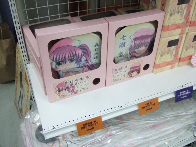ソフマップ本店では、トイプラのオッパイマウススパッド「夜勤病棟・参」(AM)「七瀬恋」(AM)や、D.C.IIの「スタンドポップ」(AM)、「マグカップ」(AM)等、コミケ70で先行販売されていたトイプラ製グッズがいくつか入荷していました。