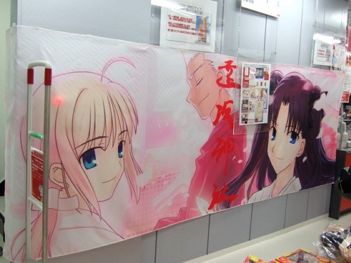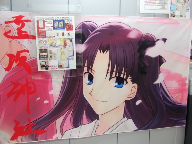 8月18日、とらのあな本店5Fでは、18日からTYPE-MOONのコミケグッズなどの限定販売を開始していて、店内壁に、巨大な遠坂神社のイラストが貼り出されていました。