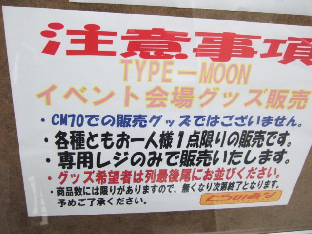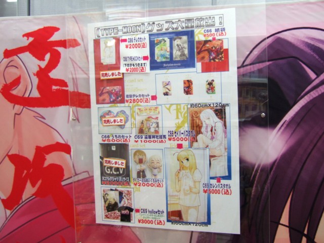 売っていたものは、テレカセットや、C66などで売られたバスタオル、タイガー道場ぬいぐるみ、遠坂神社絵馬など、自分が確認した午後5時過ぎには、すでに1/3のグッズは完売となっていました。