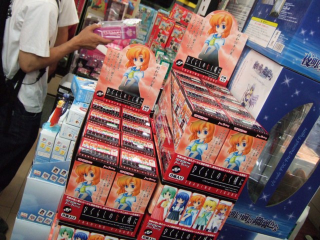 8月18日、とらのあな本店5Fでは、18日からTYPE-MOONのコミケグッズなどの限定販売を開始していて、店内壁に巨大な遠坂神社のイラストが貼り出されていました。ほか、マックスファクトリーの「コレクト700 ひぐらしのなく頃に」(AA)、コミケ70で先行販売された、トイズ・プランニング「エルフの少女 ノーマルVer.」(AM)(参考レビュー)発売など、8月18日のアキバのよろずネタを。