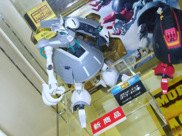 メガブロックガンダムシリーズは、つけられていたPOPによると『「機動戦士ガンダム」に登場するモビルスーツをブロックで組み上げるビルダー系商品を中心としたラインナップを展開していきます。各モビルスーツを組み上げるためのブロックパーツは基本ブロックを中心とした構成で約800ピース使用しています。パーツを組替えて使って装備や形状をアレンジしたり、他商品のパーツを使ってカスタマイズしたりとブロックならではの楽しみ方が可能です。幅広い年齢層に親しまれているブロックだけに、ライト&カジュアルな感覚で組み上げていくことができます。また、各商品にはパイロット達をモデルにしたミニフィグを同梱し、モビルスーツと並んで作品の大きな魅力となっている登場人物たちのドラマ性を描き出すことにも重点を置いています。2006年の11月の第1弾発売を皮切りに続々とラインナップを拡大させていきますのでご期待下さい。』というもの。