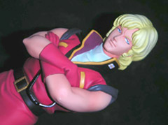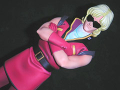 キャラホビ2006のプルーヴィーブースでは、「ルナマリア・ホーク ダメージVer.」と「クワトロ・バジーナ」のレジンキットを販売していて、完成サンプルを展示していました。「ルナマリア・ホーク ダメージVer.」は、グリフォンの「エスカレイヤー ダメージver.」(AM)(発売の様子とサンプル)同様、服がぼろぼろになっているもので、B地区が見えそうで見えない造形となっていました。