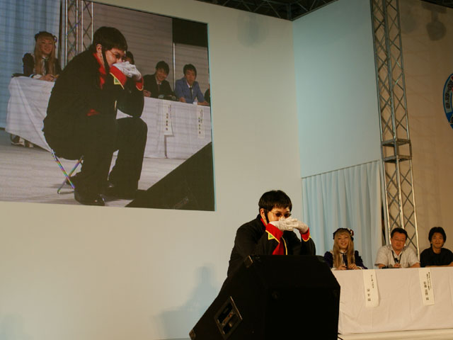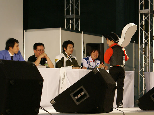 折りたたみイスを持参した碇指令へ「安っぽいネルフですねw」とのコメントに沸く会場をよそに、確信犯(?)のご本人は最後まで不敵な笑みをうかべていました。
