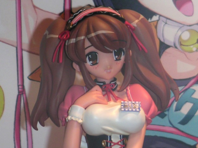コレは、「涼宮ハルヒの溜息」(AA)の表紙のみくるを立体化したもので、POPによると「宮園博久、満を持してマスプロデビュー! 即完売を果たしたあのレジンキット作品が、遂にPVC塗装済み完成品とし誕生!」という、ワンフェス2006冬でガレキとして販売されていたものをPVC化するもの。
