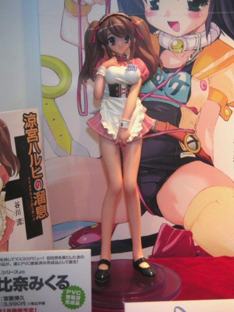 ワンフェス2006夏の海洋堂ブースにて、一般流通ハルヒ立体ものとしては、アトリエ彩「朝比奈みくる バニーガールVer.」(AM)(参考サンプル)に続く、「涼宮ハルヒの溜息」(AA)の表紙のみくるを立体化した「朝比奈みくる」も展示されていました。ほか、海洋堂やオーガニックブースで展示されていた新作フィギュア、ワンダーショウケースなどの展示の様子を合わせてお伝えします。