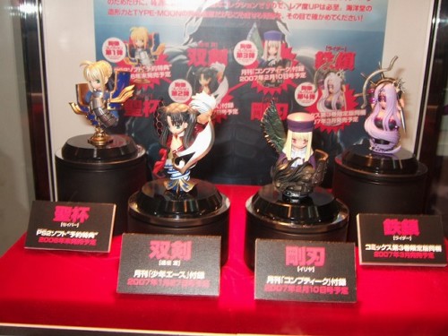 これは、海洋堂が制作した胸像フィギュアで、12月:セイバー(PS2ソフト予約特典)、1月:凛(少年エース付録)、2月:イリヤ(コンプティーク付録)、3月:ライダー(コミックス3巻限定版(AA)付録)と4ヶ月連続で角川商材に特典としてついてくるものです。
