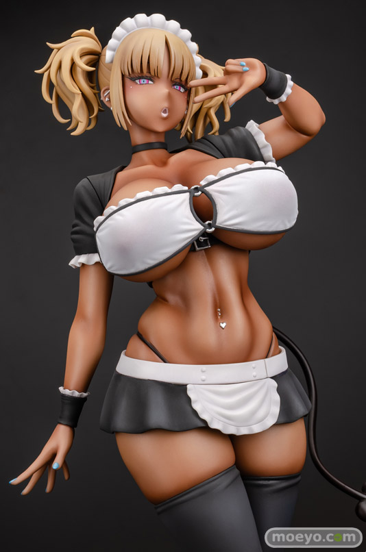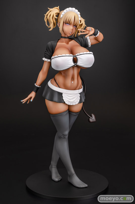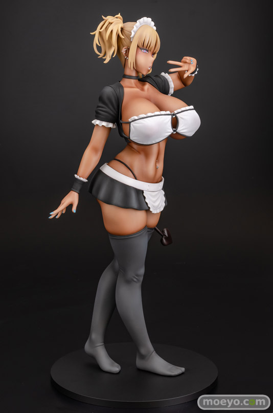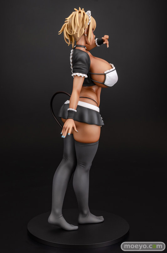 【アダルトフィギュア】Q-six新作エロフィギュア「黒ギャルメイド淫魔 ここあ」予約受付開始!Q-sixの新作エロフィギュア「黒ギャルメイド淫魔 ここあ」が予約受付開始!『大人気作品『黒ギャルメイド淫魔、ごしゅを喰う。』より「ここあ」がフィギュア化!宮元一佐先生の描く引き締まりつつ柔らかな肉感が忠実に再現されています。ボリューム満点なお胸や腹筋、おへその造形が褐色肌で映える仕上がりとなっております!胸の水着とスカートは着脱可能な仕様になっており、お好きなスタイルで飾ることができます。』というもので、原型制作はノルグレコ(Q-six)さん。彩色見本製作はK2(GILLGILL)さん。製作協力はMouseUnitさん。そのサンプルの様子を、画像レビューとしてお伝えします!(アダルトフィギュアとなります!18歳未満の方は閲覧をお控えください。)