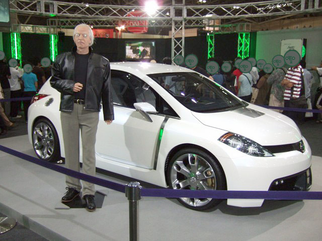キャラホビ2006の主催者コーナーのひとつ「攻殻機動隊S.A.Cブース」では、ホビージャパンによるフィギュア版も展示されていた、プロダクションI.Gと、NISSANのカーデザイナーによるコラボレーションの車「SPORTS CONCEPT」の実車が展示され、実物大のバトーのフィギュアも展示されていました。