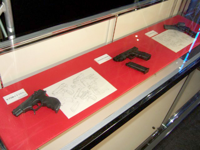 歴代の「攻殻機動隊 S.A.C」アニメシリーズの設定資料、台本や、劇中に使用されている銃器類のプロップなど、様々な展示物が所狭しと並べられていました。