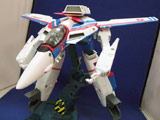 「TV版第1話の冒頭、マクロス進宙式典で華麗なエアショーを披露した“VF-1Aエンジェルバーズ仕様機”を特徴的な赤と青のセーラーカラーと共に再現しました。設定ではアクロバットチームのためガンポッドは装着しませんが、オプションでガンポッドが付属します。」