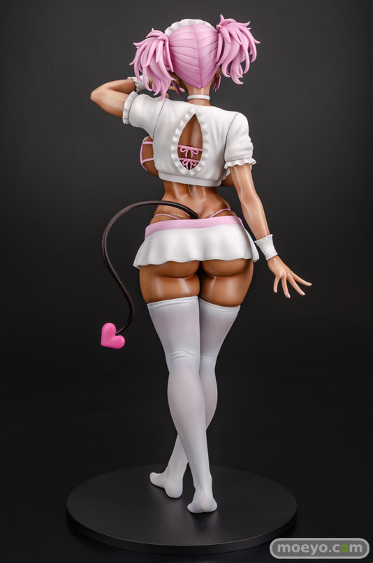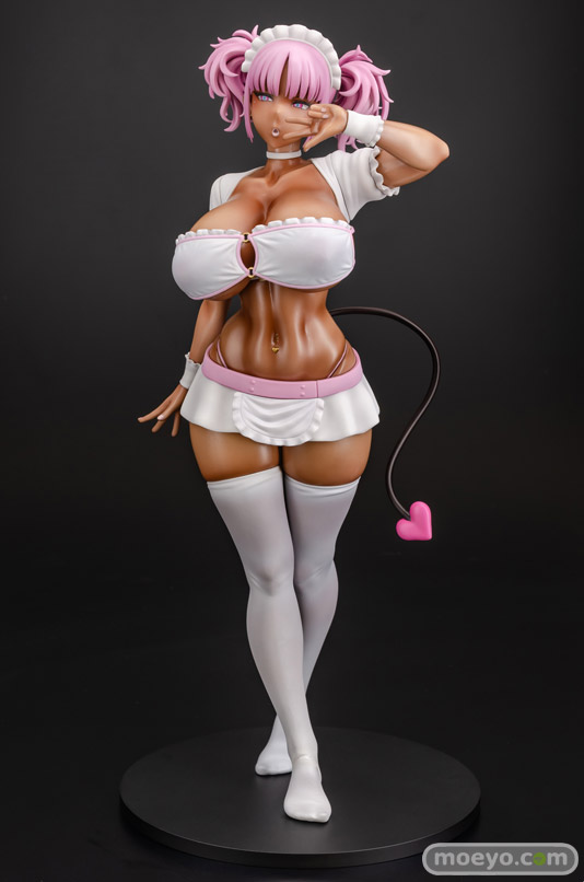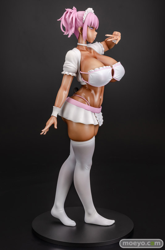 【アダルトフィギュア】Q-six新作エロフィギュア「黒ギャルメイド淫魔 ここあ Pink ver.」予約受付中!Q-sixの新作エロフィギュア「黒ギャルメイド淫魔 ここあ」が予約受付開始!『大人気作品『黒ギャルメイド淫魔、ごしゅを喰う。』より「ここあ」がフィギュア化!宮元一佐先生の描く引き締まりつつ柔らかな肉感が忠実に再現されています。通常版から白とピンクの衣装に変更され肌にも光沢が加わり、褐色肌がより強調されたカラーリングとなっております!胸の水着とスカートは着脱可能な仕様になっており、お好きなスタイルで飾ることができます。』というもので、原型制作はノルグレコ(Q-six)さん。彩色見本製作はK2(GILLGILL)さん。製作協力はMouseUnitさん。そのサンプルの様子を、画像レビューとしてお伝えします!(アダルトフィギュアとなります!18歳未満の方は閲覧をお控えください。)