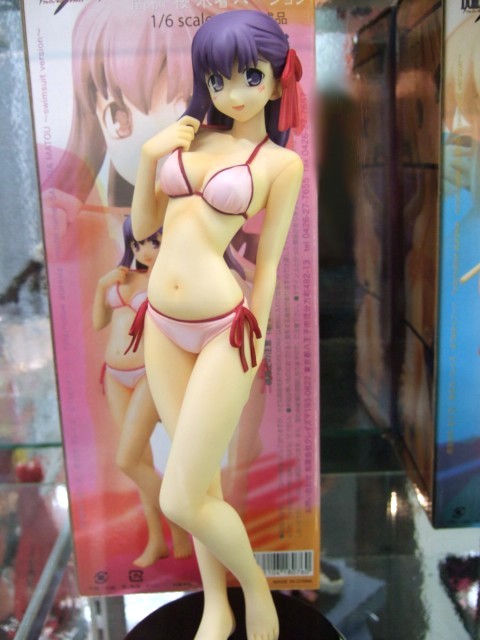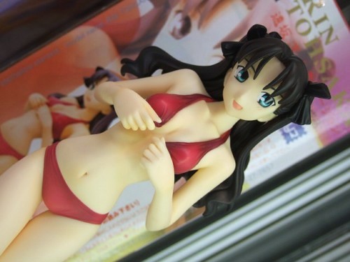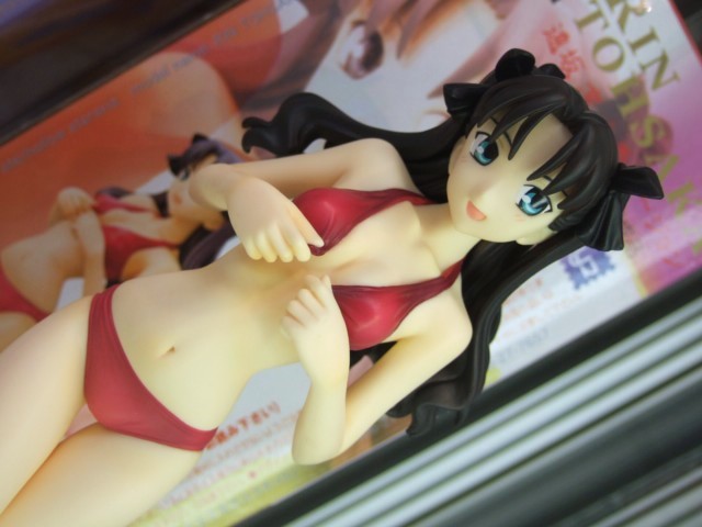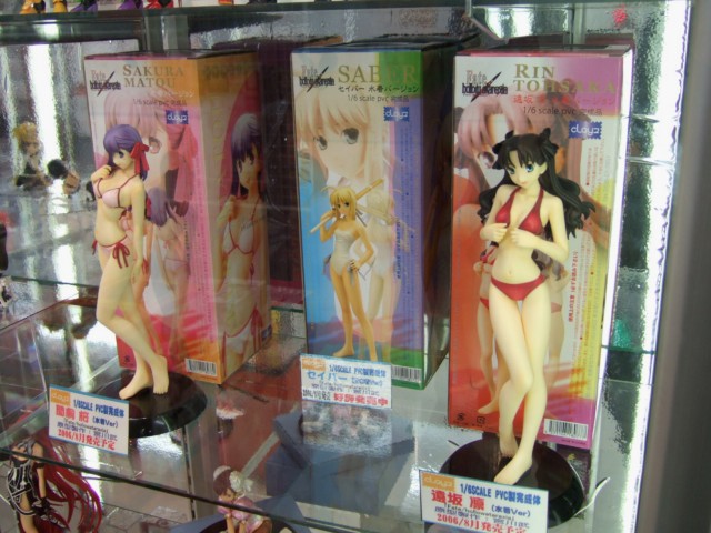 8月24日、クレイズのFate/hollow ataraxia「間桐桜」(AM)「遠坂凛」(AM)の水着版フィギュアが、アキバのいくつかのホビーショップにて発売されていました。これは、ワンフェス2006冬で発表された、T’s systemのガレキをPVC完成品にしたもの。「さあ、人気はどっちが上かしら?」「・・・姉さん・・・」というPOPがあった、とらのあな本店では、2体のサンプル展示も開始していました。