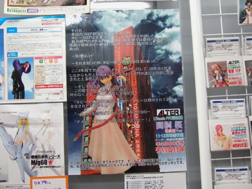 とらのあな本店5Fにあるホビーコーナーにて、アルターの「Fate/hollow ataraxia 間桐桜 戦闘服Ver.」(AA)の予約受付が開始したみたいで、毎度おなじみとなっている、とらオリジナルのPOPが掲示されていました。ただし、文章は多分ホビーフロアの内情で、アルター桜とは「ダメー!リアリティ溢れる発言は禁止ー!」というセリフ以外まったく関連性はないかなと思います・・・w