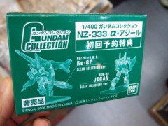 8月25日、コトブキヤラジオ会館にて、キャラシティでラピッド試作展示がされていた、バンダイの「ガンダムコレクション 1/400 MZ-333 α・アジール」(AA)が発売されていました。