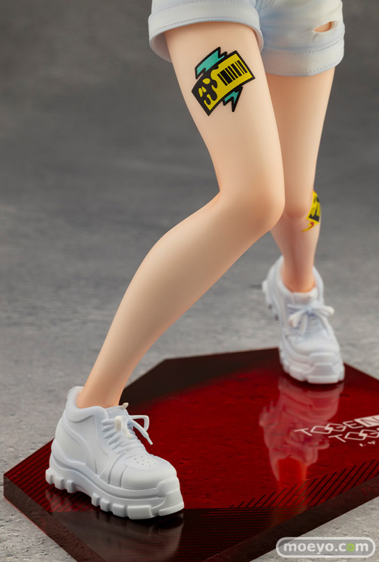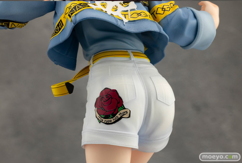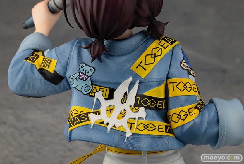 仁菜の芯の強さを感じる、力強く緊張感のある造形に注目です。表面の質感まで再現したデニムジャケットに、ロゴテープやワッペンの厚みや細かな皺まで造形で再現し、フィギュアならではの存在感を放ちます。