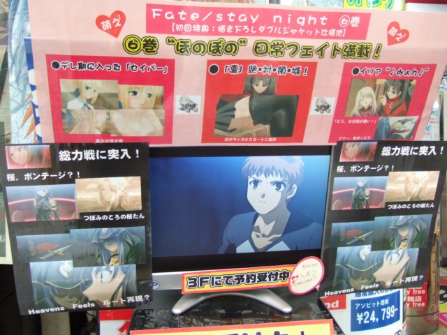 アニメ「Fate/stay night 6巻」(AA)は、8月30日発売予定ですが、ゲームシティ店頭では告知が始まっていて、デモモニターの周りや下に様々なPOPの展開が開始していました。