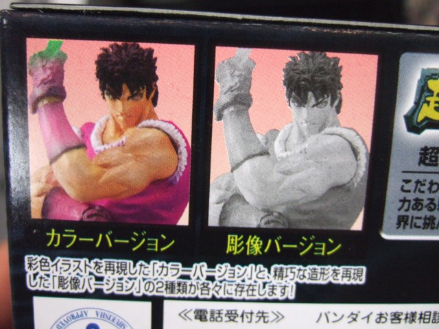 ジョナサン・ジョースター、ディオ・ブランドー、ジョナサン・ジョースター(組み合わせ用)、ディオ・ブランドー(組み合わせ用)、ブラフォードの5種のフルカラー、彫像バージョンの計10種。1BOX10個入り。
