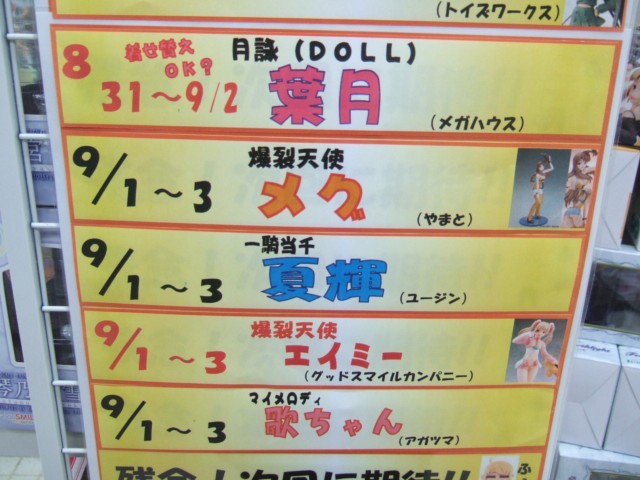 キャラシティでの入荷は31〜9/2頃となっていたので、その頃には他のアキバの店舗にも入荷してるのかも。