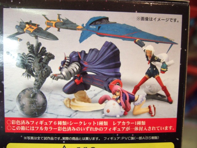 エクセリヲン、バスターマシン1号&2号、ダメージ版ガンバスター、バスターマシンディスヌフ、ラルク、ノノ私服Ver.の6種+シークレット1種で、1BOX 12個入り。