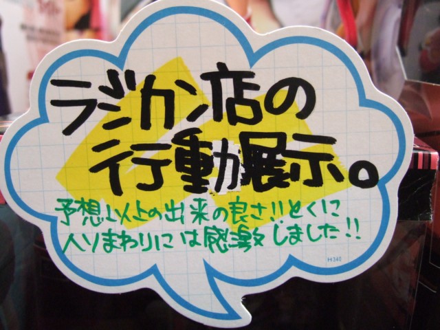 コトブキヤラジオ会館では生サンプルも展示されていて、POPによると「ラジカン店の行動展示。予想以上の出来の良さ!!とくにヘソまわりの出来に感激しました!!」とのこと。(そのヘソまわりアップ)