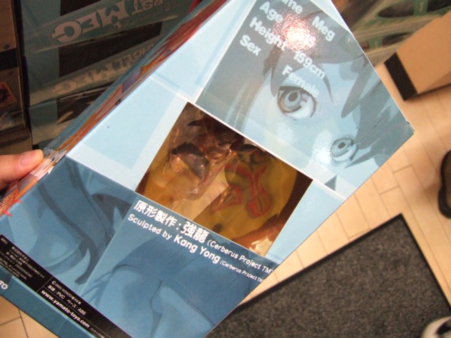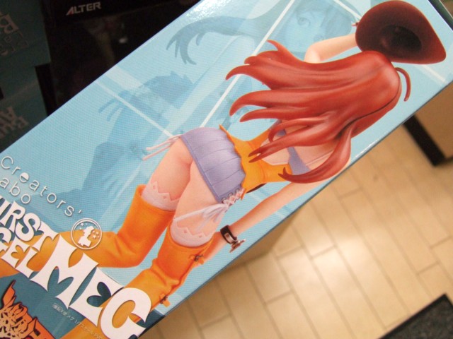 このブログで、T1サンプルT2サンプルをお伝えしたこともある、やまとの「クリエーターズ・ラボ #002 爆裂天使 メグ」(AM)が8月30日に、アキバのいくつかのホビーショップにて発売されていました。コレは、強龍(ガンヨン)氏(Cereberus Project)原型のメグのガレキを、PVC完成品にしたもの。お尻も売りなのか、パッケ上からでも、お尻が確認できる窓がついていました。