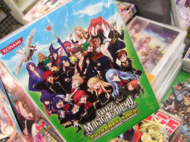 マジックアカデミーへ行こう!〜QUIZ MAGIC ACADEMY FAN BOOK〜」(AA)が、8月31日にアキバのいくつかの書籍取扱店で発売されていました。これは、Yujinから「SR ガチャ版」や、コナミプライズで「シャロン」「ルキア」などのフィギュアも発売されている、コナミの「クイズマジックアカデミー」シリーズのファンブック。さすが心得ているコナミ。内容はクイズよりキャラでした。
