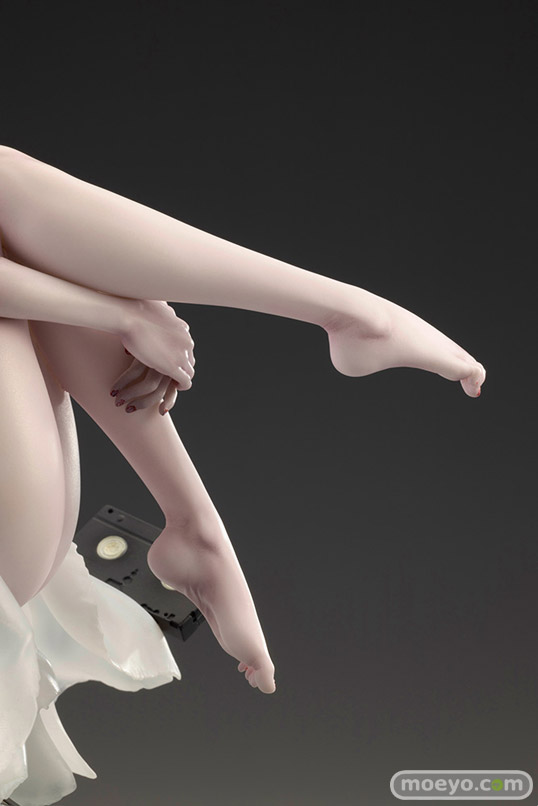 また、そのさきの手足の爪は井戸の中で足掻いたことで剥がれ落ちており、まるで赤いマニキュアのように彩ります。うずたかく積み上げられたビデオテープの山の上に、強力な超能力で浮かぶ様をイメージしたシチュエーション。