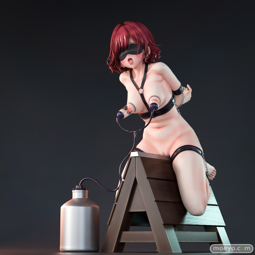 目隠しして搾乳器具と三角木馬に縛り付けたお仕置き中の花岡さんを立体化いたしました。