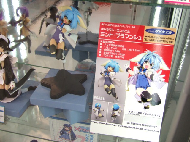 とらのあな本店5Fでは、ダイキ工業「ギャラクシーエンジェル ミント・ブラマンシュ」(AA)のサンプル展示が開始しています。これは、「ギャラクシーエンジェル」のエンジェル隊の参謀格で、おっとりしていて人当たりがいいけど、軽い世の中、人間不信に陥っている、名門ブラマンシュ財閥のお嬢様「ミント・ブラマンシュ」をぽよよんろっく氏のスク水イラストバージョンで立体化したもの。