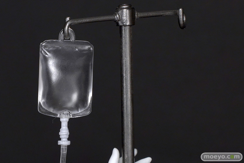 点滴スタンドから延びるルート・カテーテルを右手に構た姿はまさにナースのいで立ち。口を覆ったマスク、バニースーツは