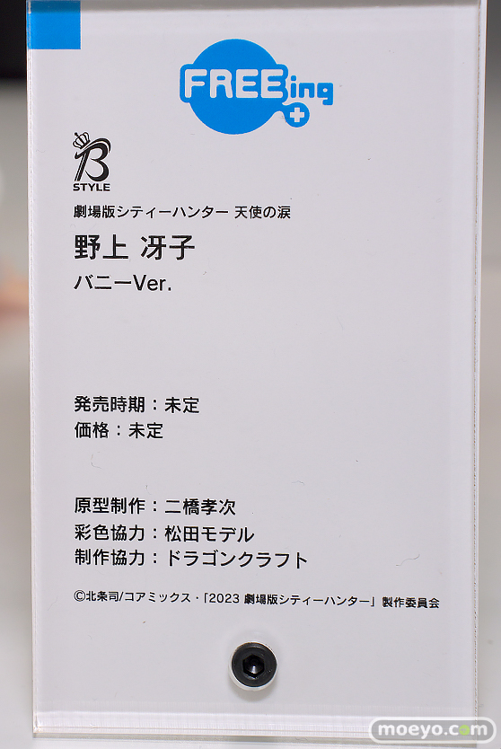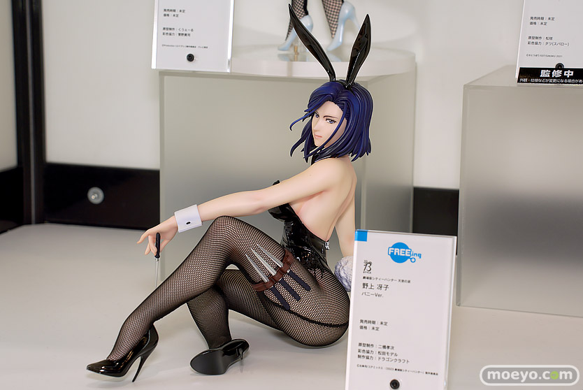 フリーイングの新作美少女フィギュア「劇場版シティーハンター 天使の涙(エンジェルダスト) 野上冴子 バニーVer.」が予約受付開始!『『劇場版シティーハンター 天使の涙(エンジェルダスト)』より、警視庁特捜課に所属する敏腕刑事「野上冴子」をバニースタイルで立体化。クールな眼差しや、誰しもが魅了される抜群のプロポーションを繊細に再現。左太もものナイフが冴子の魅力を最大限に引き立てます。』というもので、原型制作は二橋孝次さん。彩色は松田モデルさん。制作協力はドラゴンクラフトさん。「スマイルフェス2024」の会場で展示されていた彩色サンプルの様子を、画像レビューとしてお伝えします!