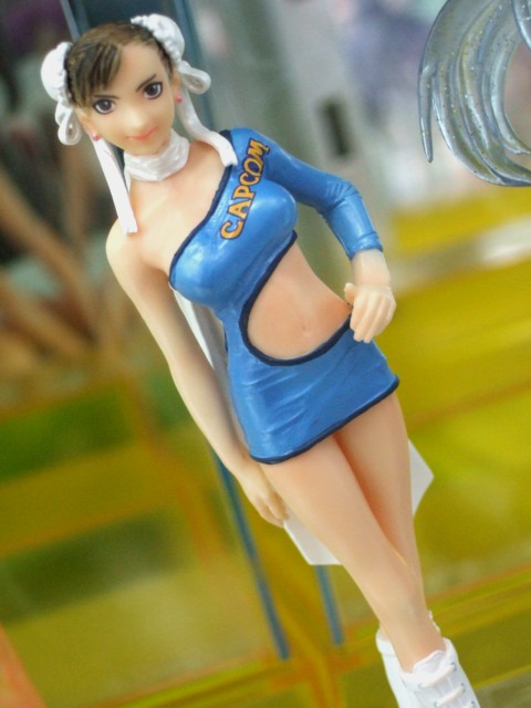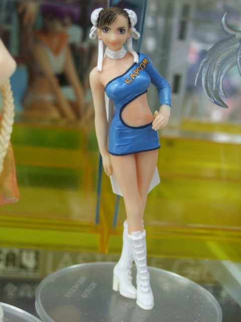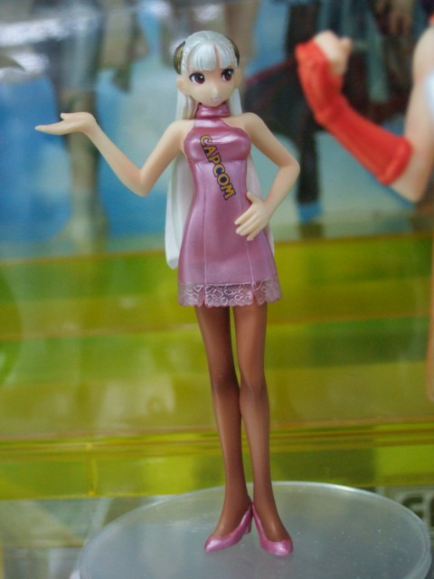 萌えるアソビット展示会から展示されている、キャラシティと、とらのあな本店5Fにて、エンスカイ「CAPCOMコンパニオンキャラクターズ」(AA)のサンプルが展示されています。これは、カプコンの人気ゲームキャラクターに過去の東京ゲームショーのコンパニオンコスチュームを着せ、有名原型師たちが独自のアレンジを加えてフィギュア化したもの。画像は冬音氏原型のトロン。