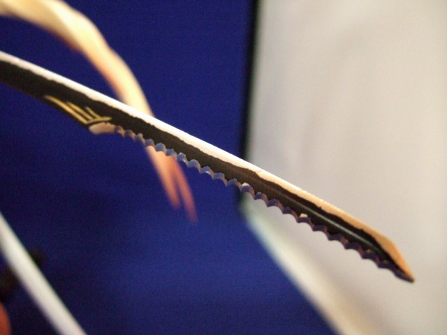 新規で付属する刀身「凶悪刀」、ご覧の通り、切っ先が両刃になっていて、背側には、波上ノギザギザ刃がついています。コレは痛そうだ・・・w ちなみに通常の刀身も付属する予定みたいです。